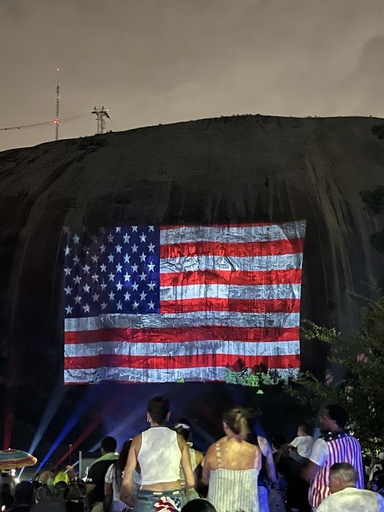 山腹には南北戦争の英雄3人(ジェファーソン・デイヴィス、ロバート・E・リー、ストーンウォール・ジャクソン)の彫刻が彫られていることでも有名で、先日July 4thに花火のイベントに行ったのですが、この山腹に映し出されるプロジェクションマッピングは圧巻でした!!正直、彫刻は目を凝らさないとよくわからないです(笑)